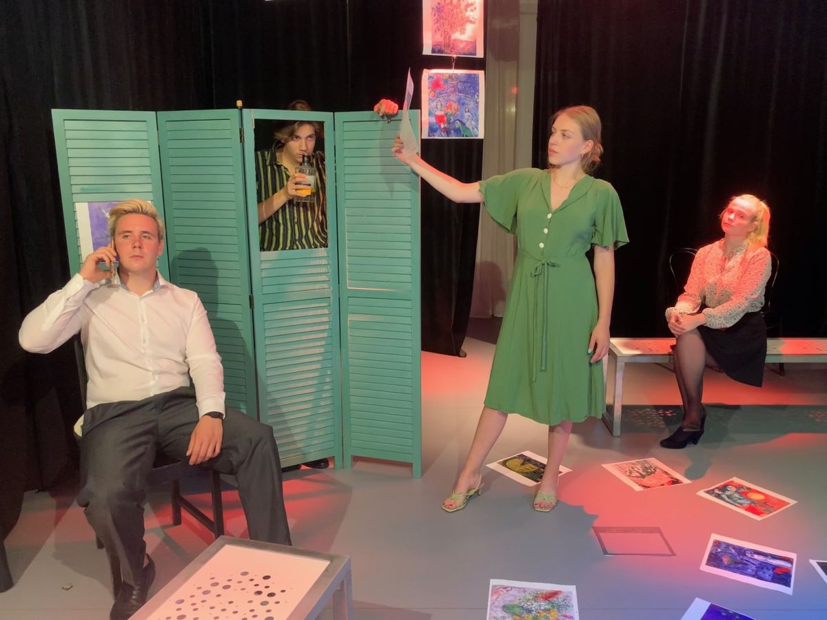 Kunst kann so schön und erfüllend sein, denkt sich Véronique (Lotte Lautenbach), aber damit steht sie ziemlich allein auf weiter Flur. Annette (Stina Martius) sitzt lieber und hat auch bald einen sitzen. Während sich Michel (Lionel von Verschuer) als großer Connaisseur karibischen Rums entpuppt, streitet Alain (Frederic Rudolph) am Telephon mit Gott und der ganzen Welt: Aber er glaubt zumindest fest an ein höheres Wesen – den Gott des Gemetzels.