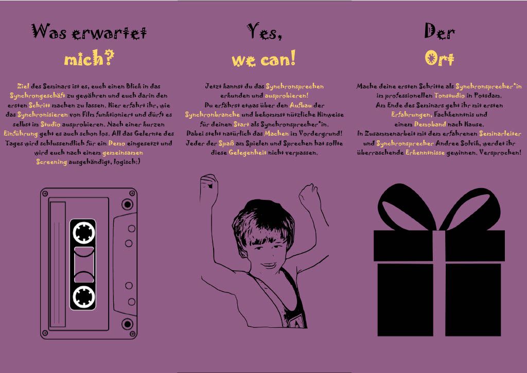 Jeder Teilnehmer erhält am Ende ein Demoband, mit dem er sich bei Synchronstudios bewerben kann.